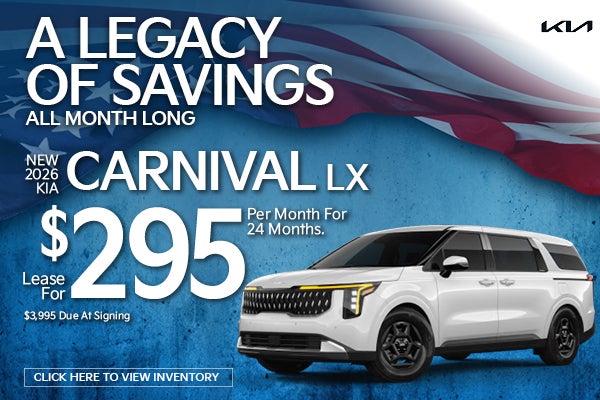 24 Month lease offer. 10,000 miles per year. $3,995 down. 1st payment, upfront fees, registration, taxes extra. Offers include all eligible factory rebates to dealer. Subject to credit. No security deposit required. See dealer for details. Stock # KN26485. Expires 03.02.2026.