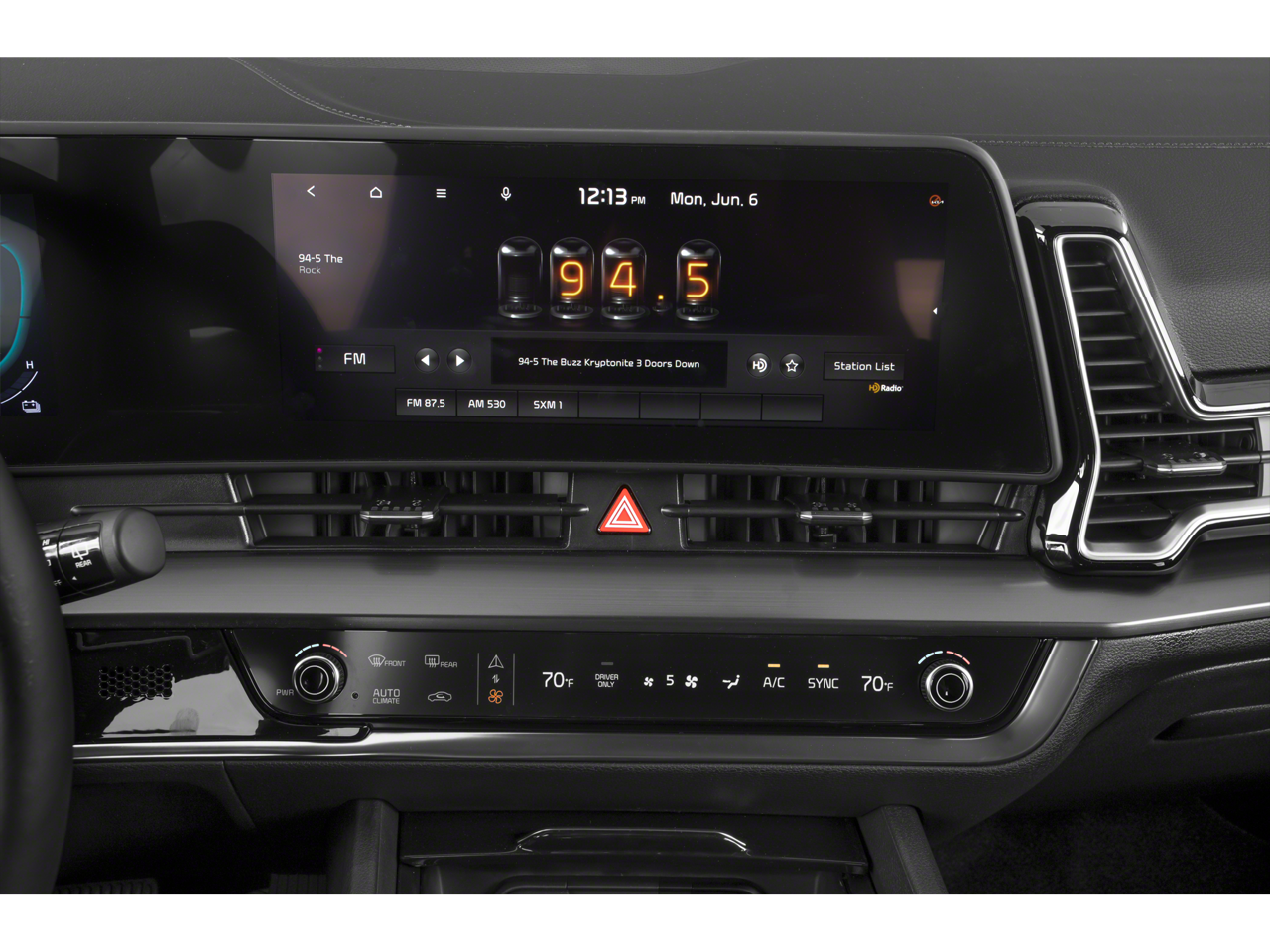 - Radio: AM/FM/HD Audio System -inc: 12.3" touchscreen w/navigation, 6 speakers, wired Apple Carplay and Android Auto, UVO telematics, voice recognition, USB, SiriusXM and Bluetooth® phone and streaming audio