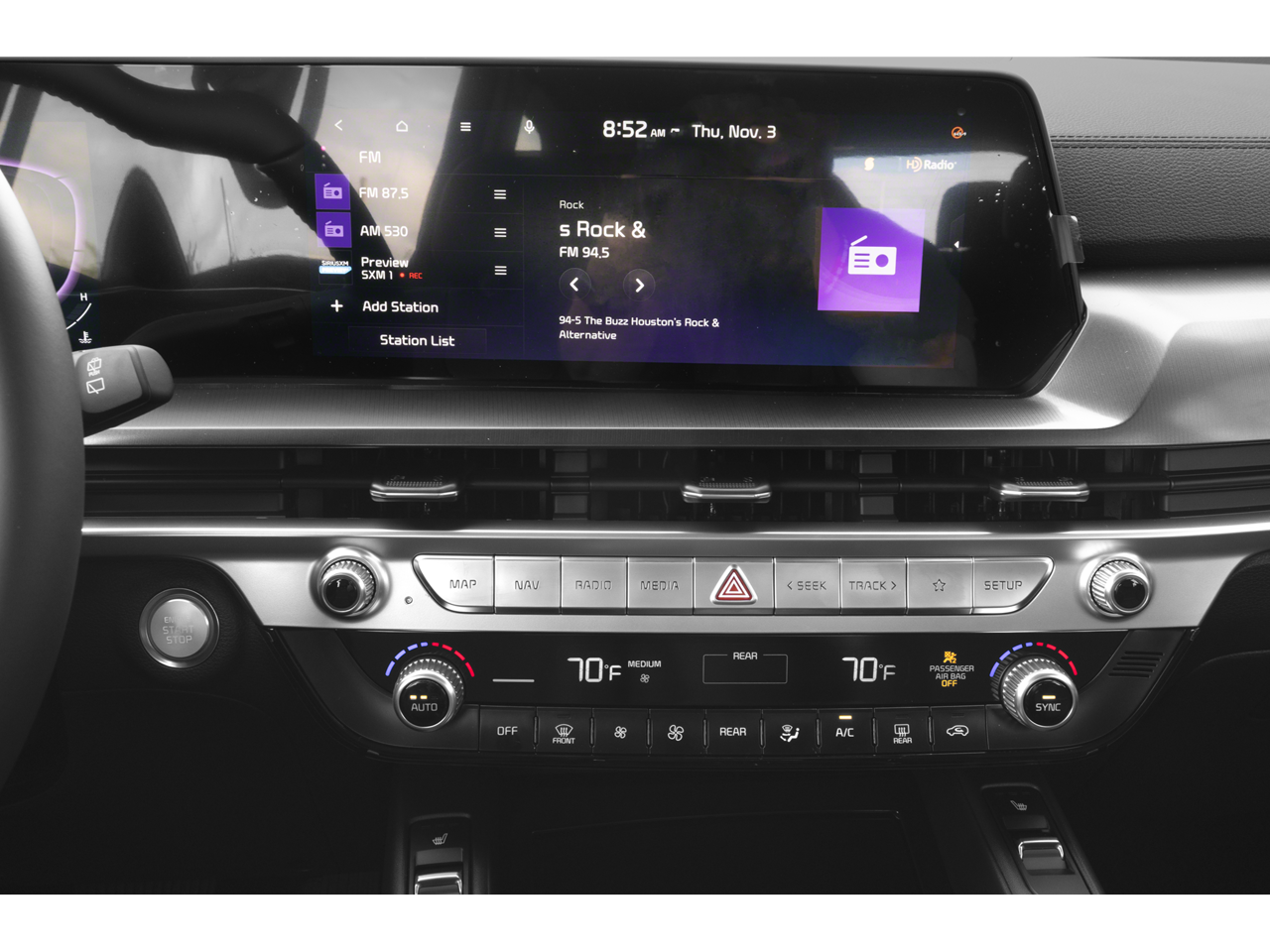 - Radio: AM/FM Display Audio System -inc: 12.3" audio display unit w/navigation, MAP OTA, driver talk, quiet mode, Android Auto and Apple CarPlay capability, SiriusXM, 6 speakers, multi-Bluetooth hands-free w/voice recognition, Telematics Mobile Unit (TMU) and Wi-Fi hotspot